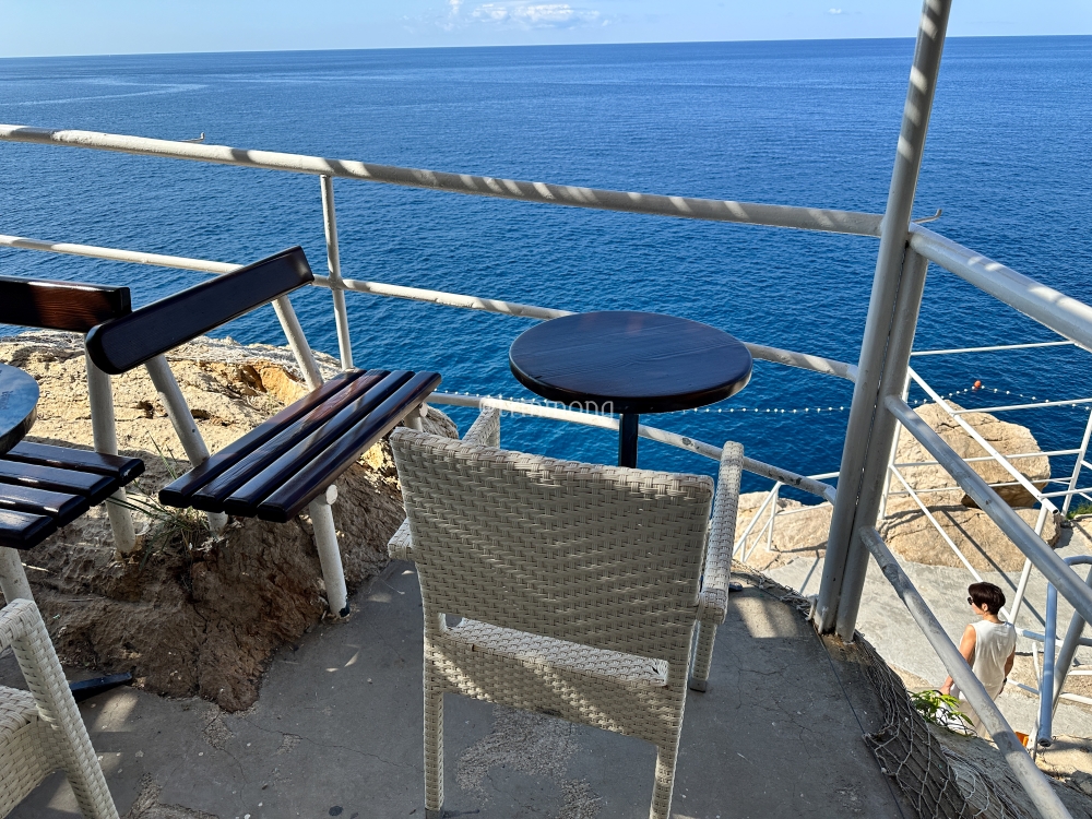 바다와 맞닿아 있는 절벽 같은 성벽 외벽에 카페가 자리하고 있어서, 카페 손님 외에는 드넓은 바다만 시야에 들어오기 때문에, 힐링 타임을 즐길 수 있는 매력적인 곳이다.