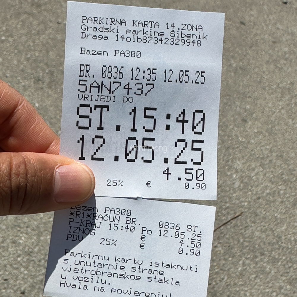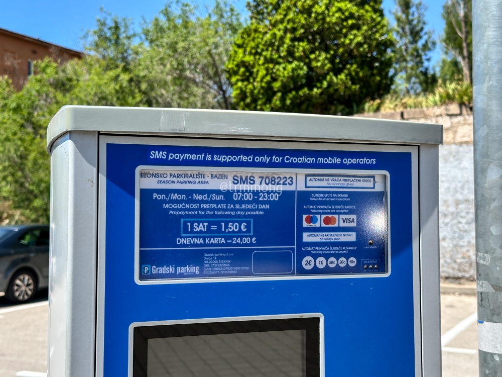 우리는 주차 시간에 제한되는 것을 좋아하지 않기 때문에 늘 넉넉하게 주차 티켓을 끊는 편이다. 쉬베니크(시베니크)에서도 체류 예정 시간이 길지는 않았지만, 혹시 너무 예뻐서 더 머물게 될 수도 있으니 넉넉하게 3시간으로 결제했다.
