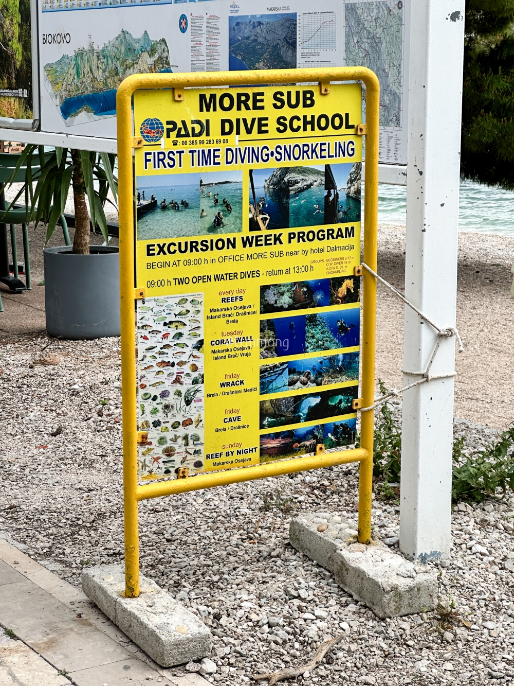 여기에도 곳곳에 보트 렌탈 광고가 세워져 있었다. 스쿠버 다이빙 스쿨 광고도 보였다. 이번 여행에서는 캠핑장을 주로 이용했는데, 캠핑장 내에 다이빙 센터가 위치해 있는 곳들이 꽤 있었다. 스쿠버 다이빙을 즐기기 위해 크로아티아를 찾는 여행자들이 꽤 많은 듯하다.