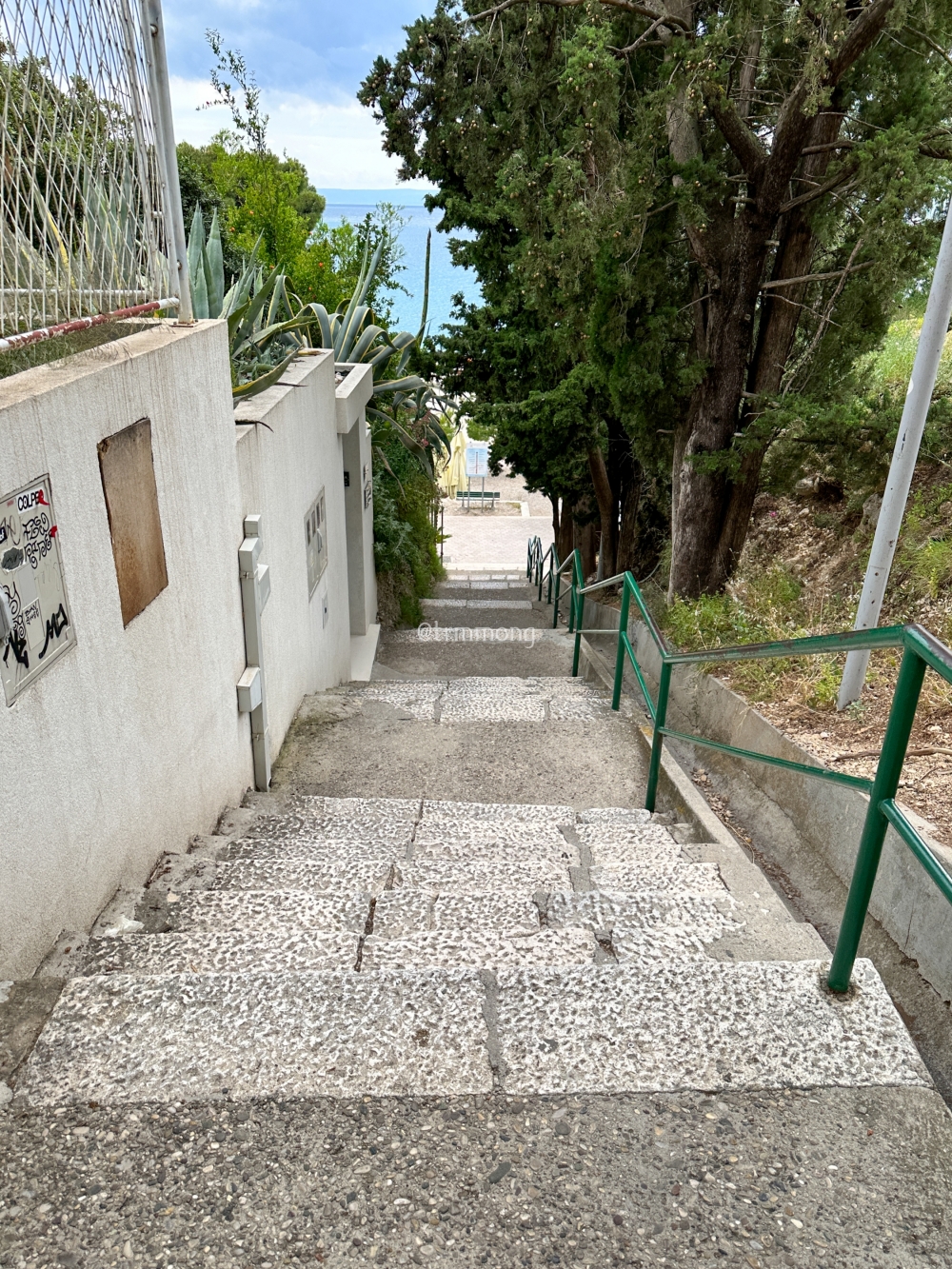 마카르스카 항구 근처에서 점심을 먹고 차로 5분 거리에 위치한 해변 근처 무료 주차장으로 이동했다. 별도로 관리가 되지 않는 노지 주차장이었는데, 바로 옆에 해변으로 이어지는 계단이 있었다.