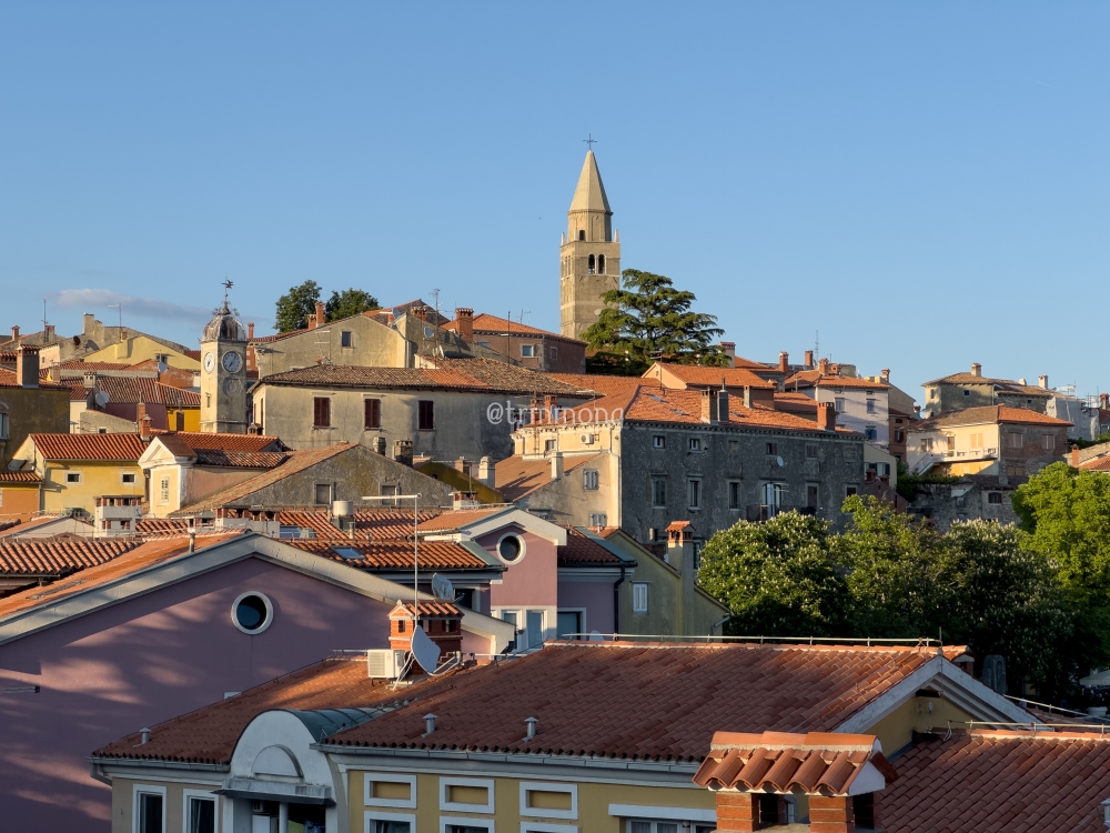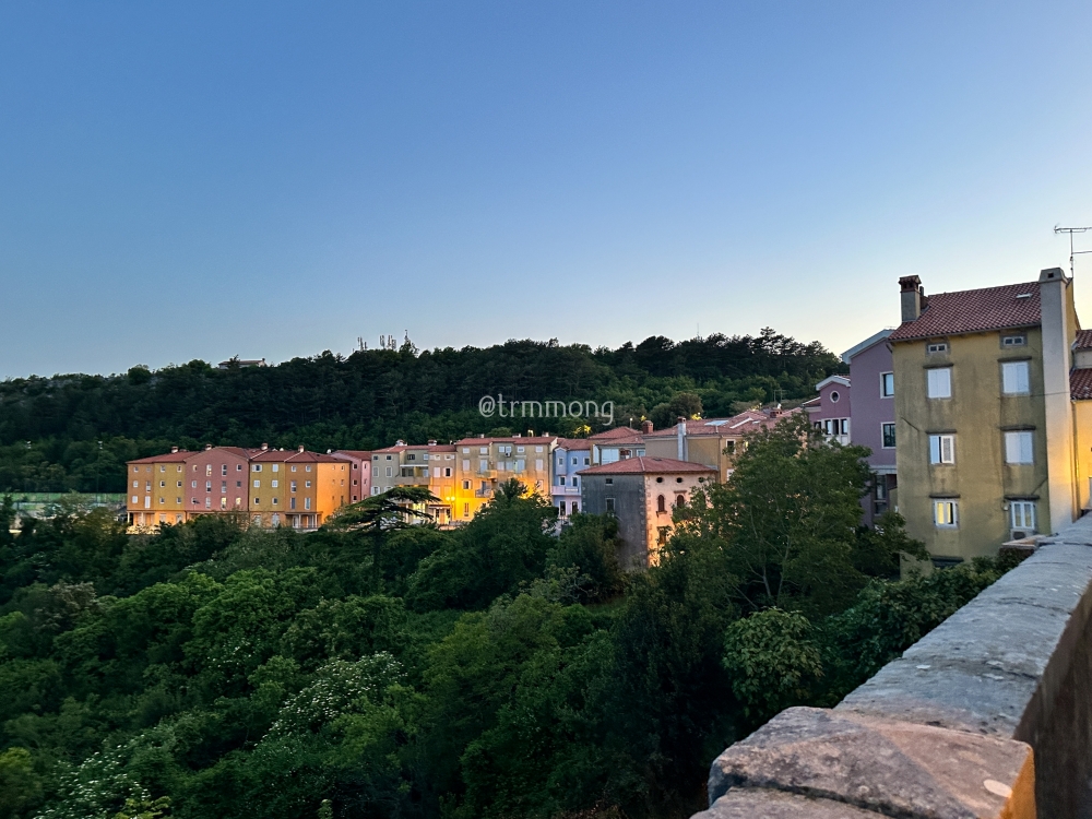 붉은색 건물 뒤편으로는 라빈 구시가지가 자리하고 있다. 이제 와 생각해 보면 조금만 더 힘을 내서 올드타운까지 둘러보고 왔으면 더 좋았을 것 같다는 생각이 들지만, 이 순간에는 너무 피곤하고 지친 상태였다. 라바츠(Rabac)에서 짧게 하이킹도 하고 수영도 하느라 모든 에너지를 탕진한 상태였기 때문이다.