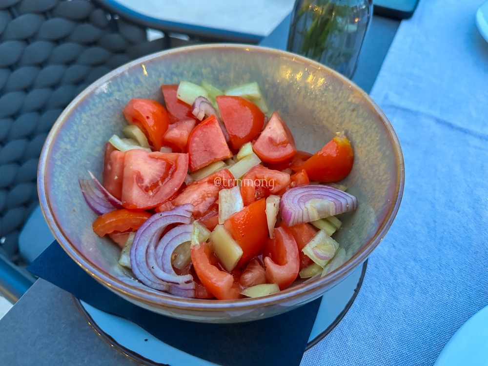 특별할 것 없어 보이는 이 샐러드가 너무 맛있었다. 토마토, 파프리카, 양파에 올리브오일, 소금, 호추 조금 뿌린 것 같은데, 정말 맛있었다. 입안에서 신선함이 톡톡 터지는 느낌이었다.