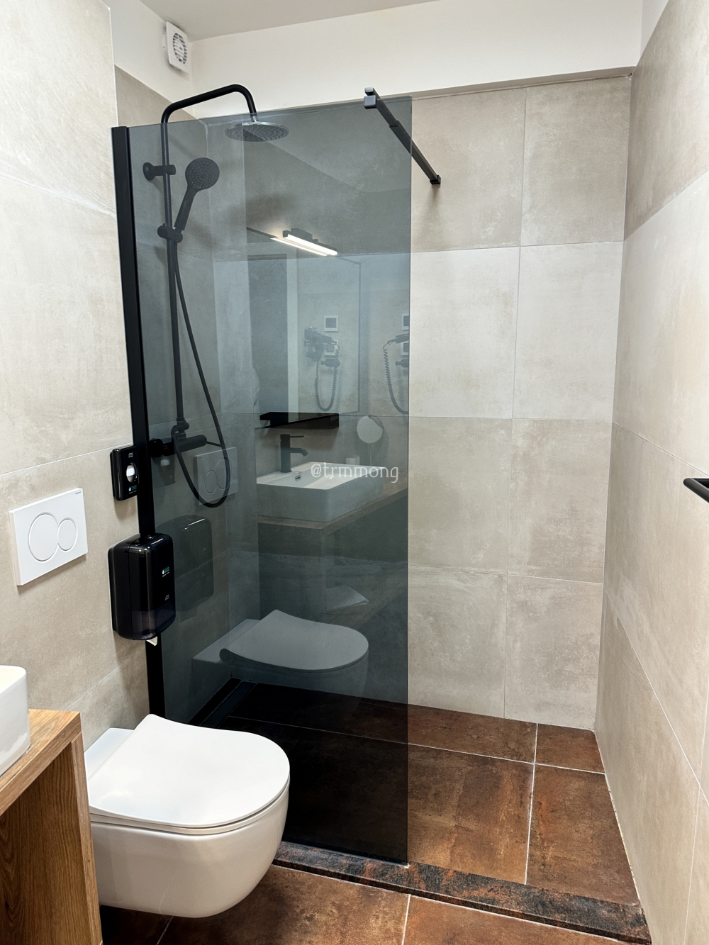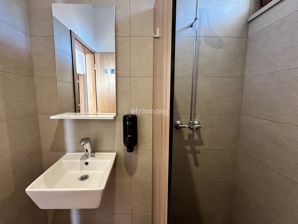 샤워 공간과 탈의 공간이 분리되어 있다. 이렇게 공간이 나뉘어야 옷에 물이 튀지 않아서 좋다.