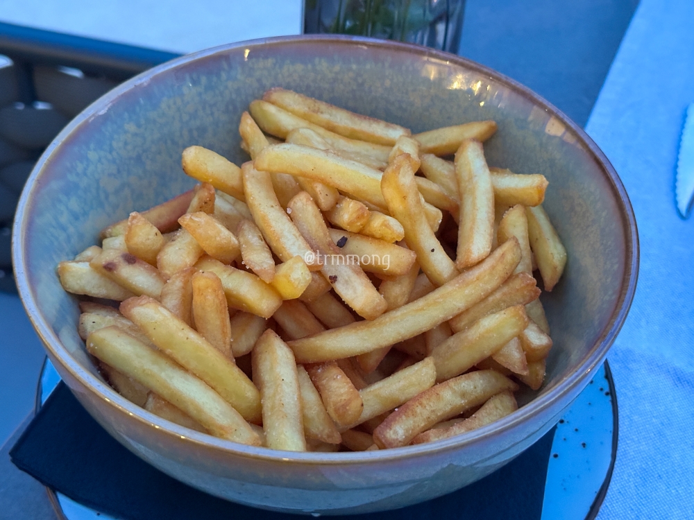 감자튀김도 볼에 가득 담아 줬다. 계산서에 안 들어 있었던 걸 보니, 감자튀김은 메인 요리의 사이드로 포함되는 항목인 것 같다. 눈으로 봤을 때는 양이 많아 보이지 않았는데, 샐러드, 식전 빵, 해산물, 감자튀김까지 차례차례 먹다 보니 포만감이 상당했다. 결국 감자튀김은 다 못 먹고 남겼다.