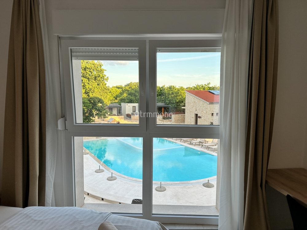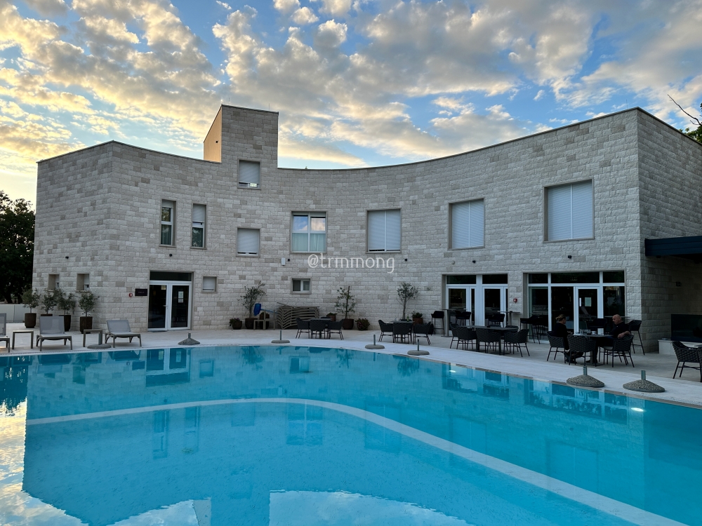 방에서 수영장이 내려다보인다. 해가 더 떨어져서 기온이 낮아지기 전에 서둘러 수영장부터 가기로 했다. 5월의 크로아티아는 아침저녁에는 선선하지만 낮에는 땀이 날 정도로 덥기 때문에 당장 물에 퐁당 빠져들고 싶은 생각이 굴뚝같았기 때문이다.