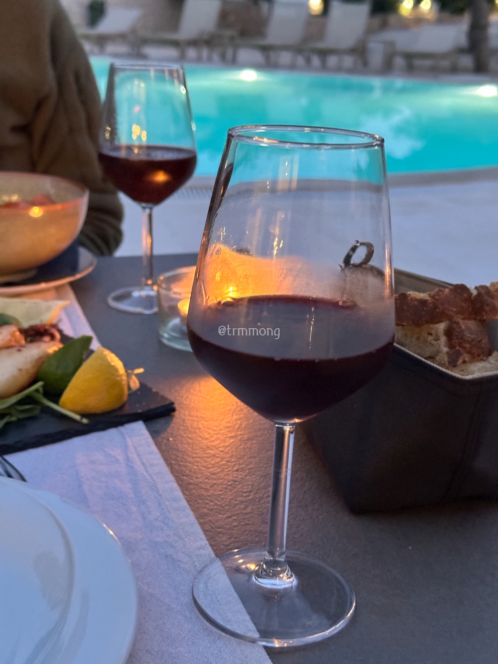 오늘은 우리 둘 다 와인 한 잔씩 하기로 했다. 와인을 따라 줄 때 알게 되었는데, 이곳의 주인장이 농장도 함께 운영하고 있어서 우리의 저녁 식사에 사용한 식자재는 대부분 유기농으로 직접 재배한 것이라고 했다. 와인도 자체 와이너리에서 생산한 것이라고 했다.