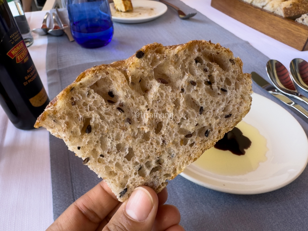 식전 빵. 무료로 제공해 주는 것인 줄 알았는데, 나중에 영수증을 보니 금액이 추가되어 있었다. 빵은 촉촉하니 신선하고 고소해서 맛있었다. 식전 빵으로 배 채우기 싫어서 다 먹지 않는 편인데, 빵도 맛있고 테이블마다 비치된 올리브오일이랑 발사믹 식초도 맛있어서 듬뿍듬뿍 찍어서 야무지게 먹어치웠다.