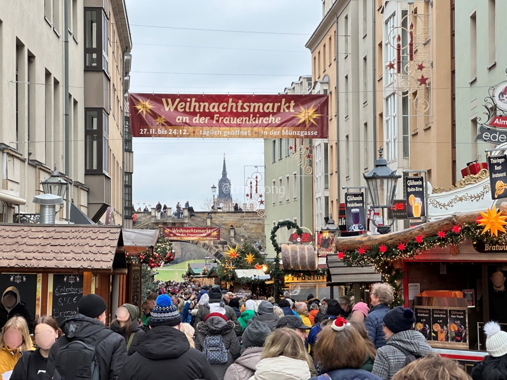 프라우엔 교회에서 브륄의 테라스(Brühl's Terrace)를 잇는 뮌츠 거리(Münzgasse)에도 크리스마스 마켓이 운영된다. 엘베 강변으로 향하는 관광객들이 지나가는 길목이기 때문에 규모는 작지만, 드레스덴에서 가장 붐비는 마켓이다. 입구에 1층이 글뤼바인 판매 부스로 조성되어 있는 거대한 크리스마스 피라미드가 세워져 있다.